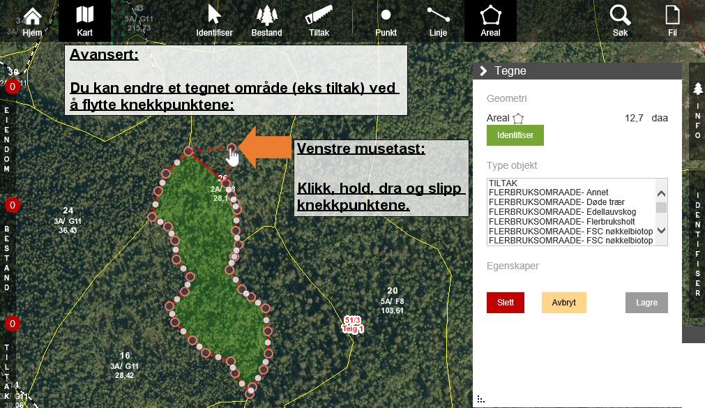 - AVANSERT: Hvordan endre tidligere tegnet område (vha knekkpunkt)