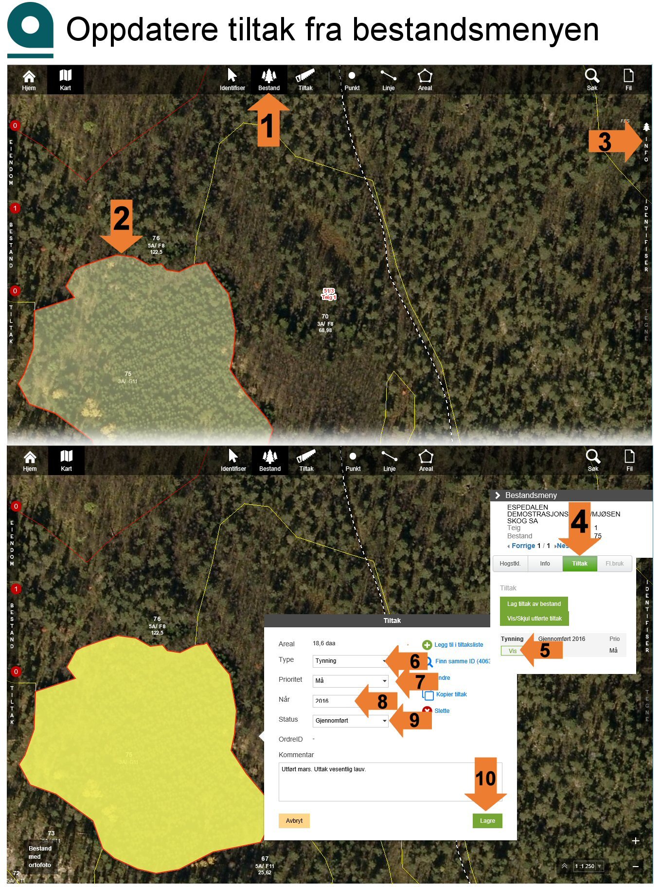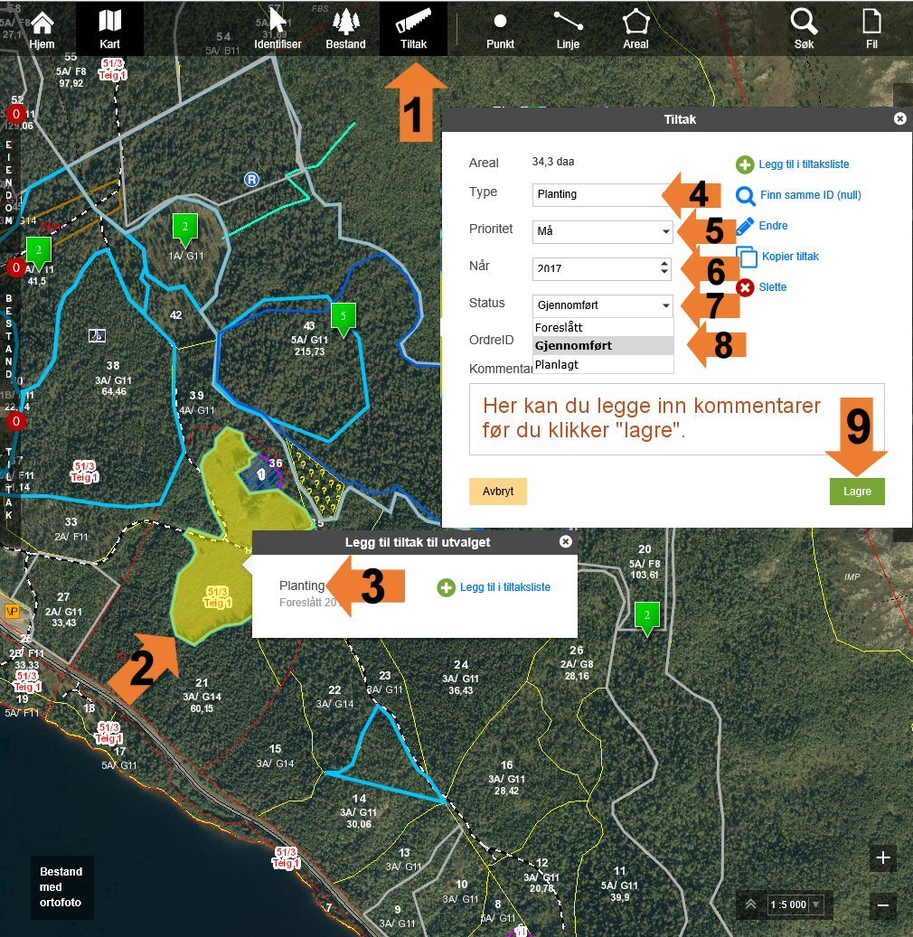 - Du kan notere i kommentarfeltet i det enkelte bestand hva som er utført.