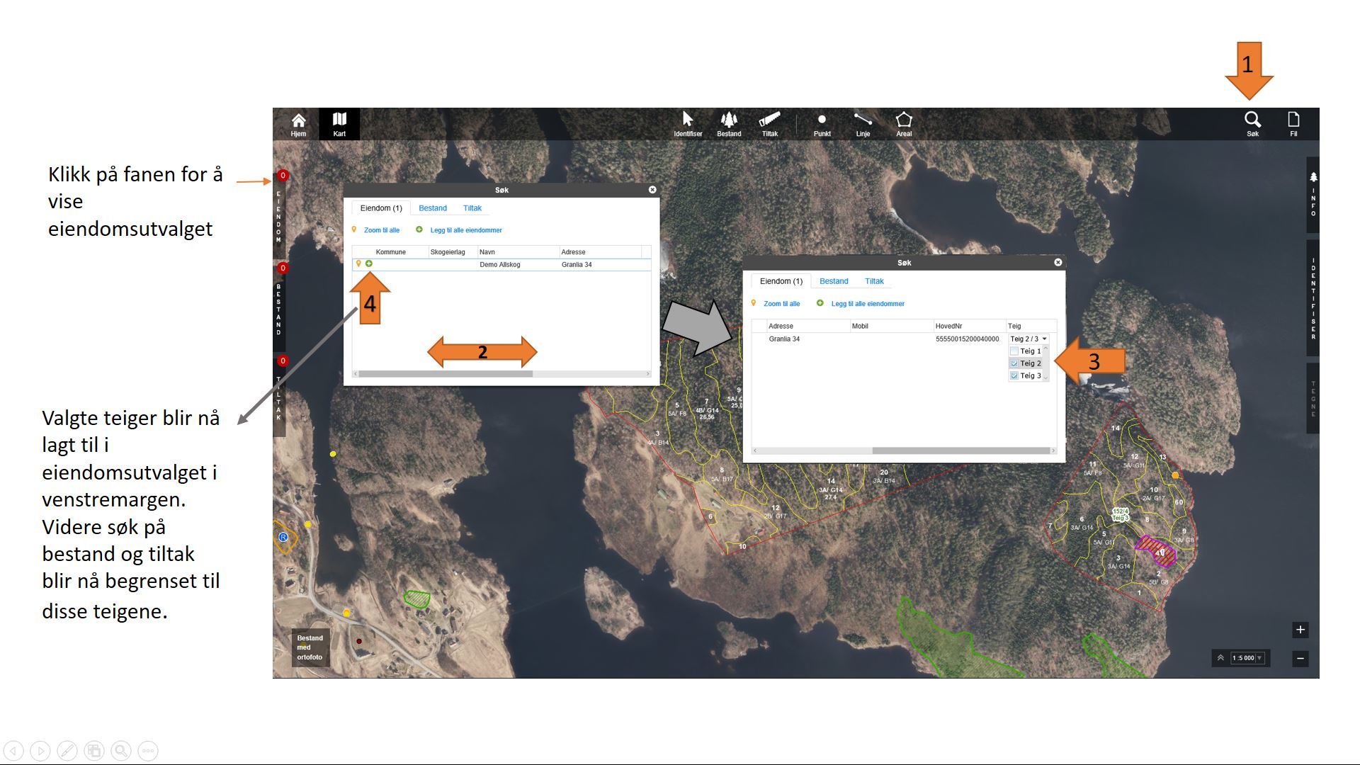 Velg eiendom og teig Til toppen