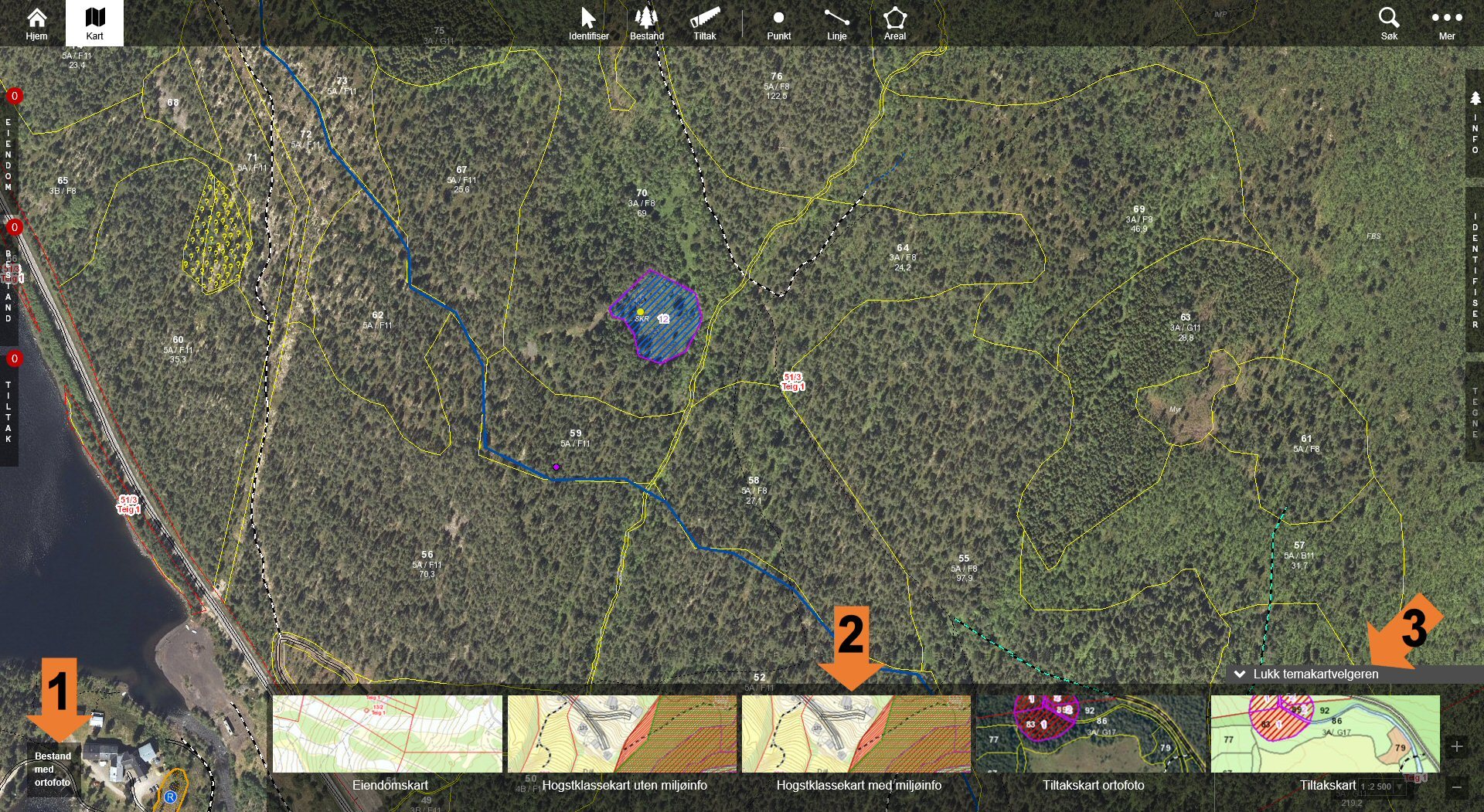Se info om objekter i kartet (nøkkelbiotoper, kulturminner, artspunkt m.m.) Til toppen