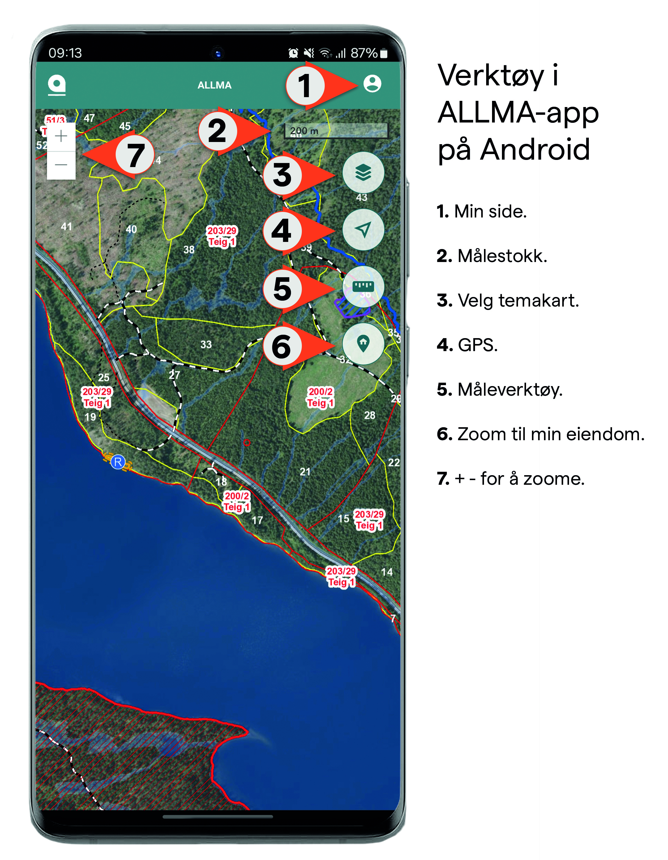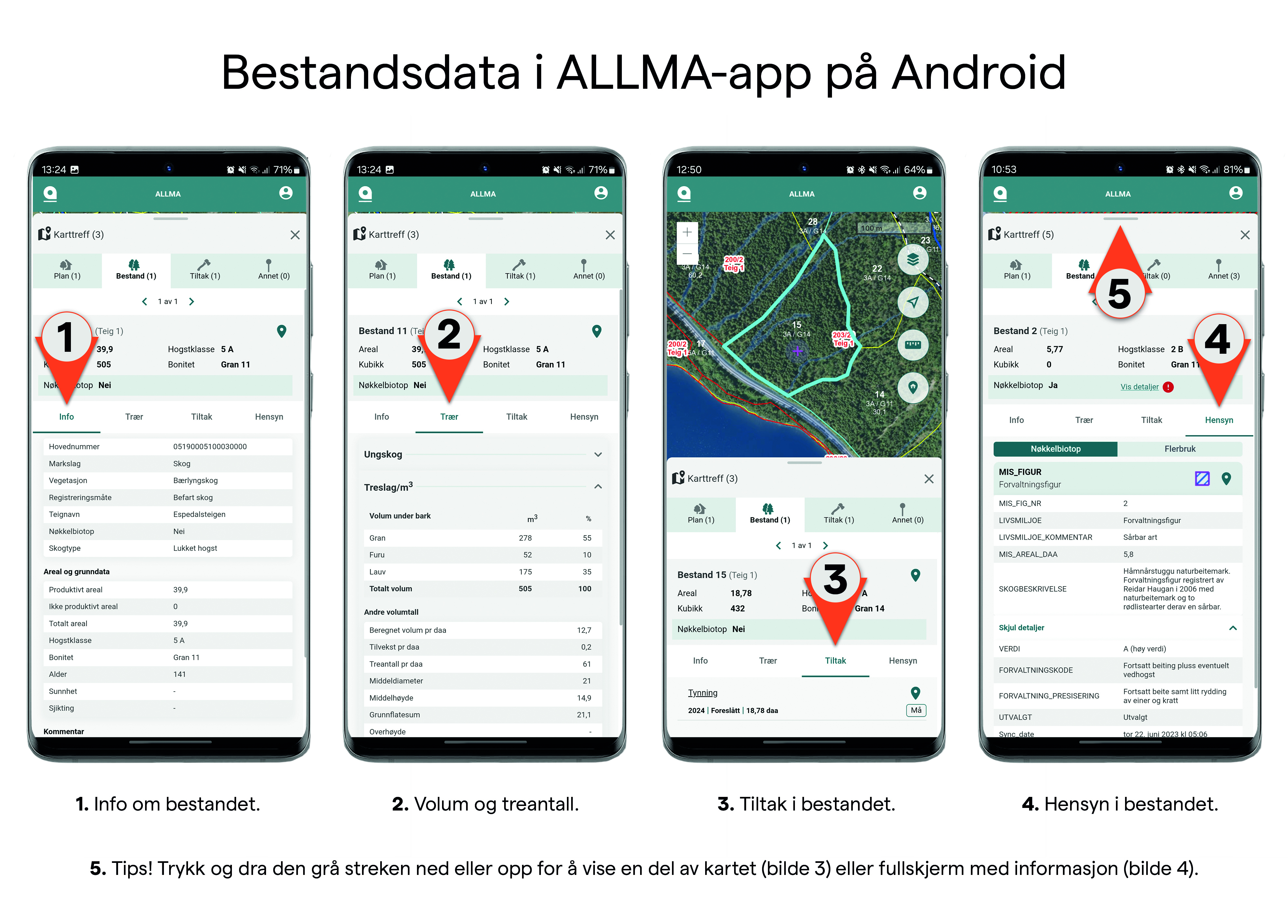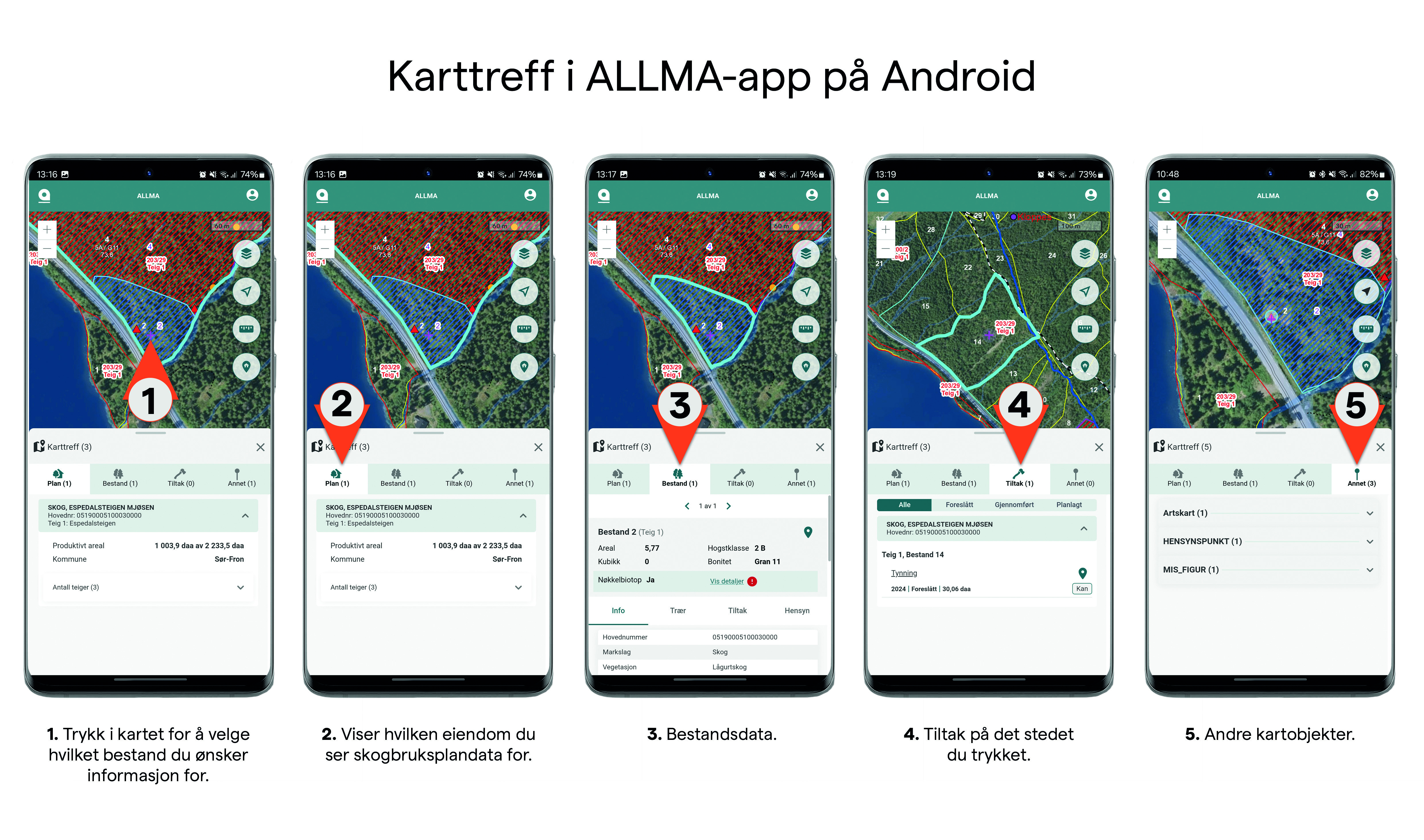 Trykk i kartet for å identifisere eiendom, bestand, tiltak og andre kartobjekter.
